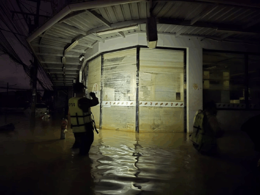 รองโฆษก ตร. กล่าวว่า เมื่อช่วงเย็นวันเกิดเหตุ ศูนย์รับแจ้งเหตุ 191 รับแจ้งมีคนร้าย 5 คน บุกปล้นทรัพย์ร้านสะดวกซื้อกวาดสิ่งของและทรัพย์สินไป ผู้แจ้งต้องหนีเอาตัวรอดออกมาทางหลังคา จึงประสานชุดปฏิบัติการพิเศษแดนไทย 54 ลุยฝ่าน้ำท่วมเข้าตรวจสอบพร้อมอาวุธและโล่ เมื่อเข้าไปถึงพบร้านสะดวกซื้อเป็นอาคารพาณิชย์ 3 ชั้น ชั้น 1 เป็นร้านค้า ชั้น 2 และ 3 เป็นที่พักอาศัย