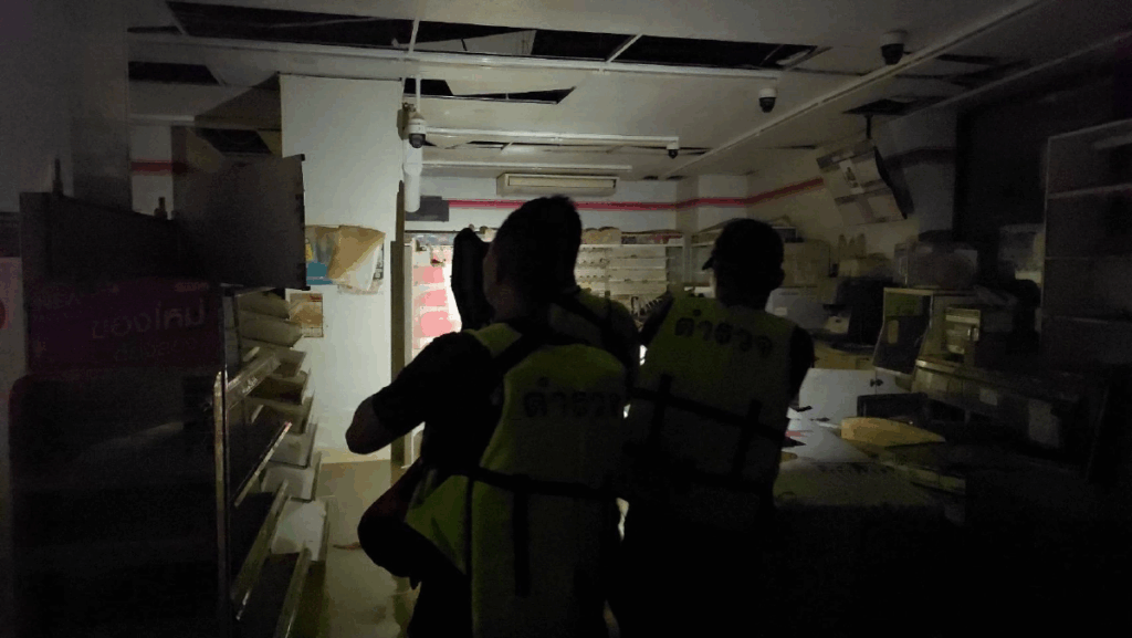 โดยไม่ทราบว่าคนร้ายหลบซ่อนอยู่จุดใด จึงกระจายกำลังเข้าตรวจสอบพร้อมอาวุธพบว่า ในส่วนร้านค้าสิ่งของกระจัดกระจาย ชั้น 2 และชั้น 3 ขณะที่กลุ่มคนร้ายหนีไปแล้ว เมื่อสอบถามจากประชาชนที่อยู่ใกล้เคียงพบว่า เห็นคนร้ายเข้าไปในร้านสะดวกซื้อและก่อเหตุจริง ซึ่งขณะนี้ฝ่ายสืบสวนกำลังติดตามตัว