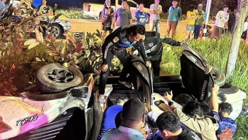 ตอนแรกหนูขับ หนูรู้สึกง่วงเลยจะหาปั๊มนอน และพี่คนขับเลยอาสาขับให้เพราะหมุดปั๊มอยู่ใกล้ ๆ แต่ปั๊มดันปิดเลยขับมากันต่อเพื่อหาที่นอน (คนขับมีประสบการณ์) แต่ขับมาสักพัก หนูไม่ทราบว่าเกิดอะไรขึ้น หนูอยู่คันหลัง เห็นแค่รถส่ายและคุมรถไม่อยู่แล้ว (รายละเอียดส่วนอื่นหนูจะมาแจ้งอีกครั้งหนูต้องรอคนขับออกจากห้องฉุกเฉินถึงจะยืนยันได้) หลังจากนั้นก็เป็นตามภาพค่ะ แต่เปลี่ยนขับแค่ไม่กี่นาทีก็เกิดอุบัติ หนูทำเต็มที่แล้วจริง ๆ หนูต้องขอโทษกับสิ่งที่เกิดขึ้นและขอขอบคุณพี่พี่กู้ภัยหลายหน่วยมาก ๆ หนูไม่ทราบว่ามีใครบ้าง ขอบคุณจริงๆ ค่ะ
