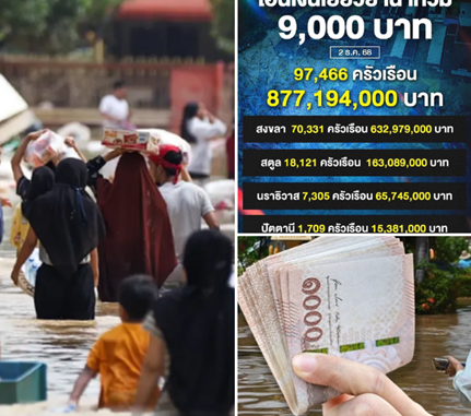 ทั้งนี้ เมื่อวานที่ผ่านมา (1 ธ.ค. 68) ปภ. และธนาคารออมสินได้โอนเงินช่วยเหลือสำเร็จแล้วใน 3 จังหวัดภาคใต้ ที่สงขลา ปัตตานี และสตูล รวม 25,908 ครัวเรือน ได้แก่ สงขลา 4,466 ครัวเรือน ปัตตานี 13,133 ครัวเรือน และสตูล 8,309 ครัวเรือน คิดเป็นวงเงินรวม 233,172,000 บาท อย่างไรก็ตาม ยังมีการโอนเงินไม่สำเร็จจำนวน 663 ครัวเรือน เนื่องจากบัญชีไม่ปกติและอยู่ระหว่างรอการปรับปรุงข้อมูล โดยรัฐบาลยืนยันจะเร่งรัดการจ่ายเงินเยียวยาให้เร็วที่สุด เพื่อช่วยบรรเทาความเดือดร้อนของประชาชนให้ทันการณ์